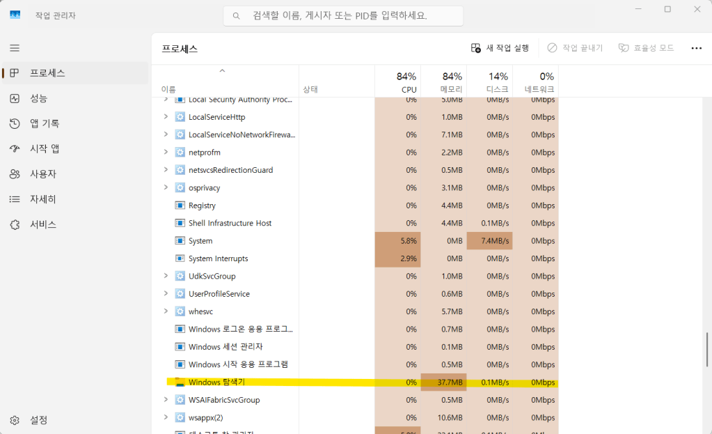🔧 1. Windows 탐색기 재시작
